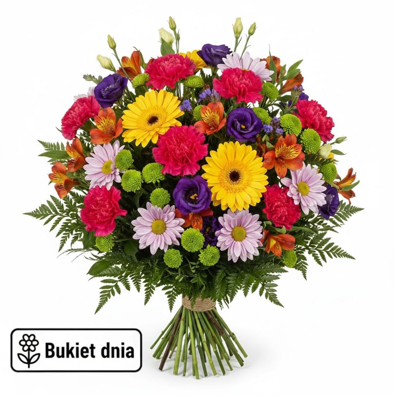 Bukiet Dnia w Grudziądzu to świeża kompozycja florystyczna przygotowywana każdego dnia z aktualnie dostępnych kwiatów. Florystka dobiera kwiaty i kolory według własnego uznania. W bukiecie wykorzystywane są kwiaty sezonowe oraz całoroczne, tworząc naturalną i spójną całość. To doskonały wybór na prezent lub miły gest. Zamów bukiet z dostawą na terenie Grudziądza i pozostaw resztę nam.